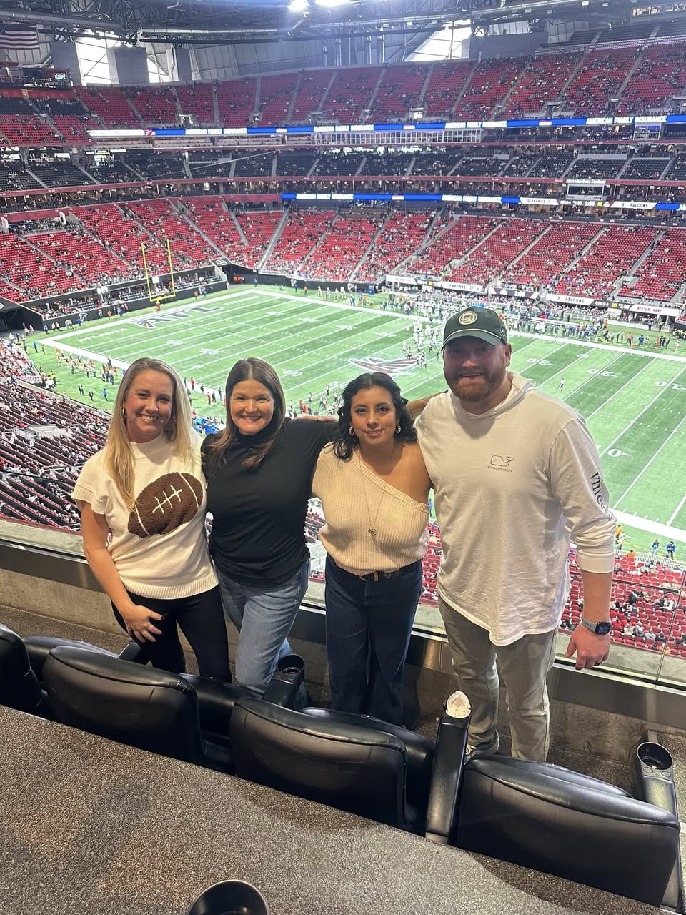 Today was one of those days that I will be smiling about for a long time. We had the chance to attend the Falcons vs Seahawks game, and it truly felt like a treat from start to finish. What made it even more special was being invited to watch the game from NorthStar Mortgage’s suite, thanks to our wonderful lender partner, Dexter. His kindness and generosity turned an already fun day into something unforgettable.